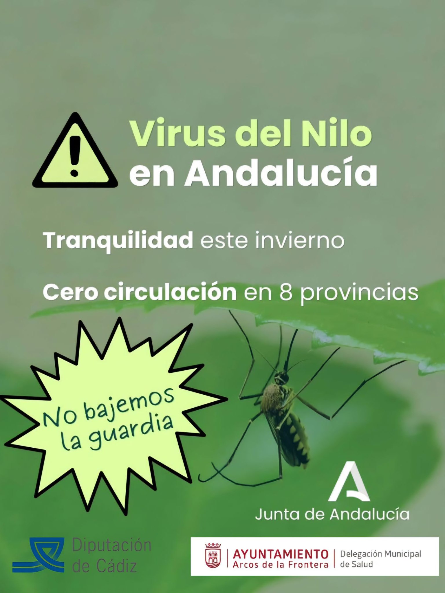 Previo al inicio de la campaña 2026 de vigilancia del mosquito del Virus del Nilo, la delegación municipal de Salud del Ayuntamiento de Arcos de la Frontera informa a la ciudadanía que durante el invierno no se han registrado casos de contagio en Andalucía según los datos disponibles. Según la delegada municipal de Salud, Nieves
