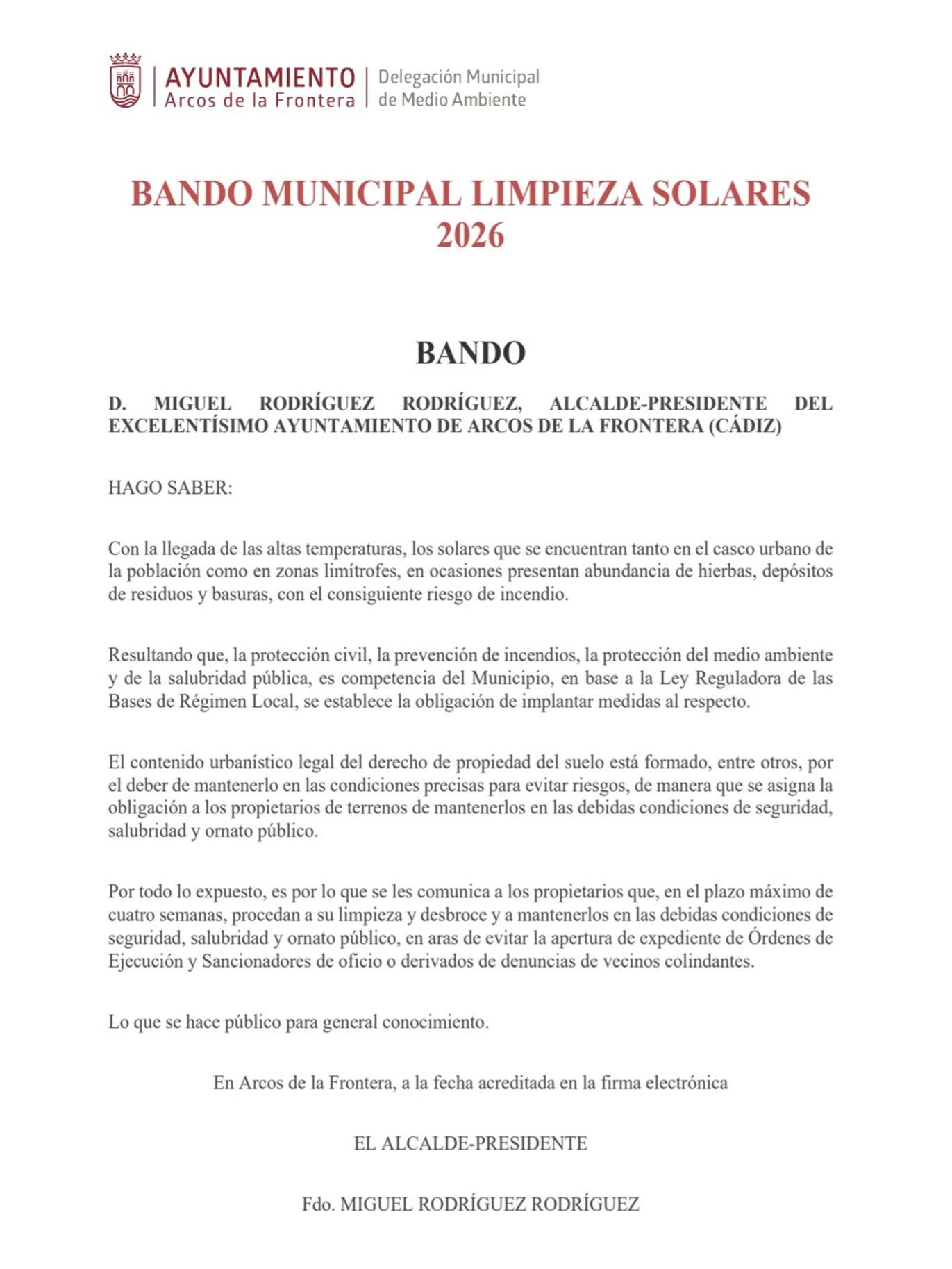 Bando municipal de limpieza de solares