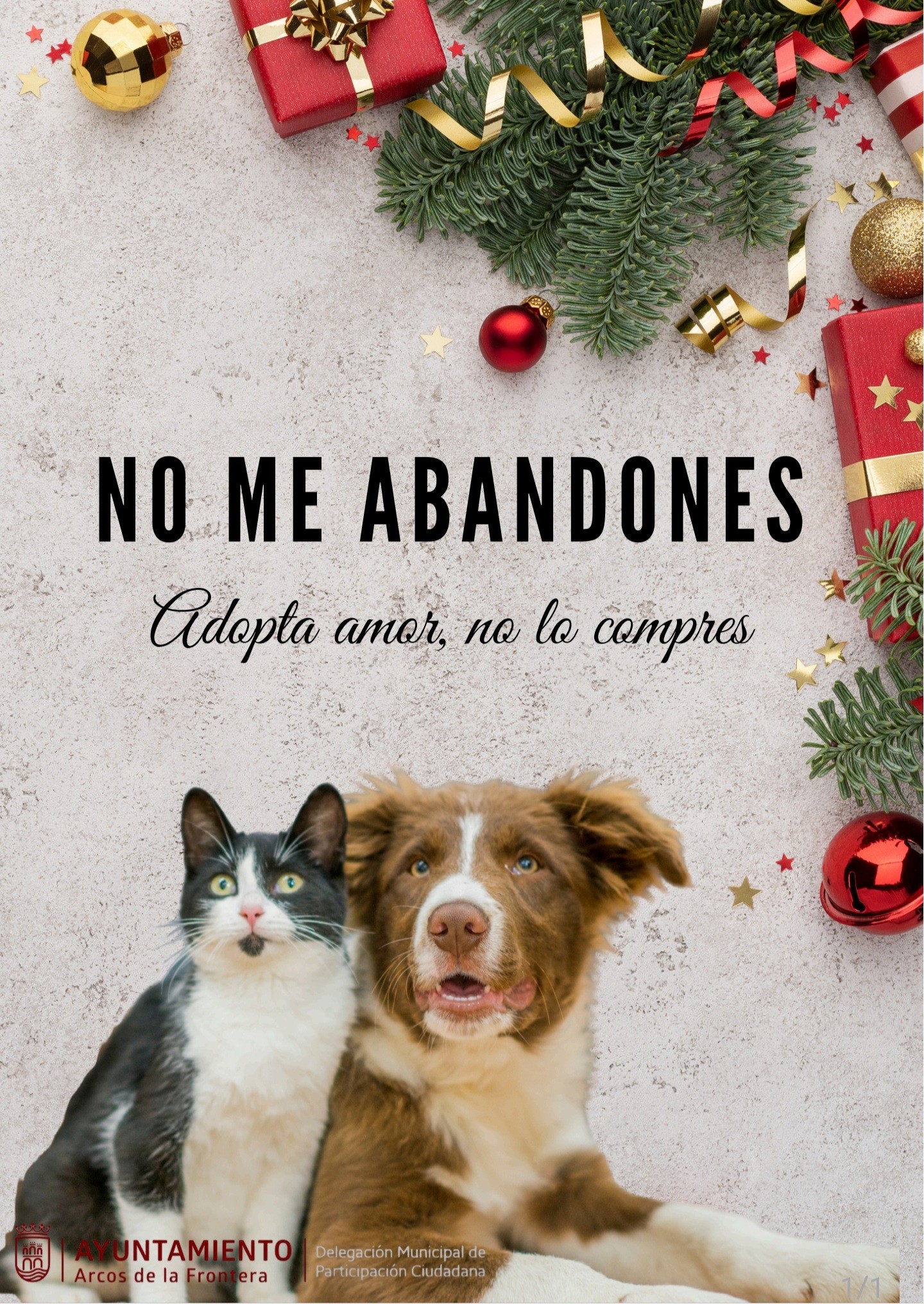 Con el lema “No me abandones. Adopta amor, no lo compres”, visible en el cartel oficial de la campaña, el Ayuntamiento recuerda que una mascota no es un juguete, sino un compromiso para toda la vida.