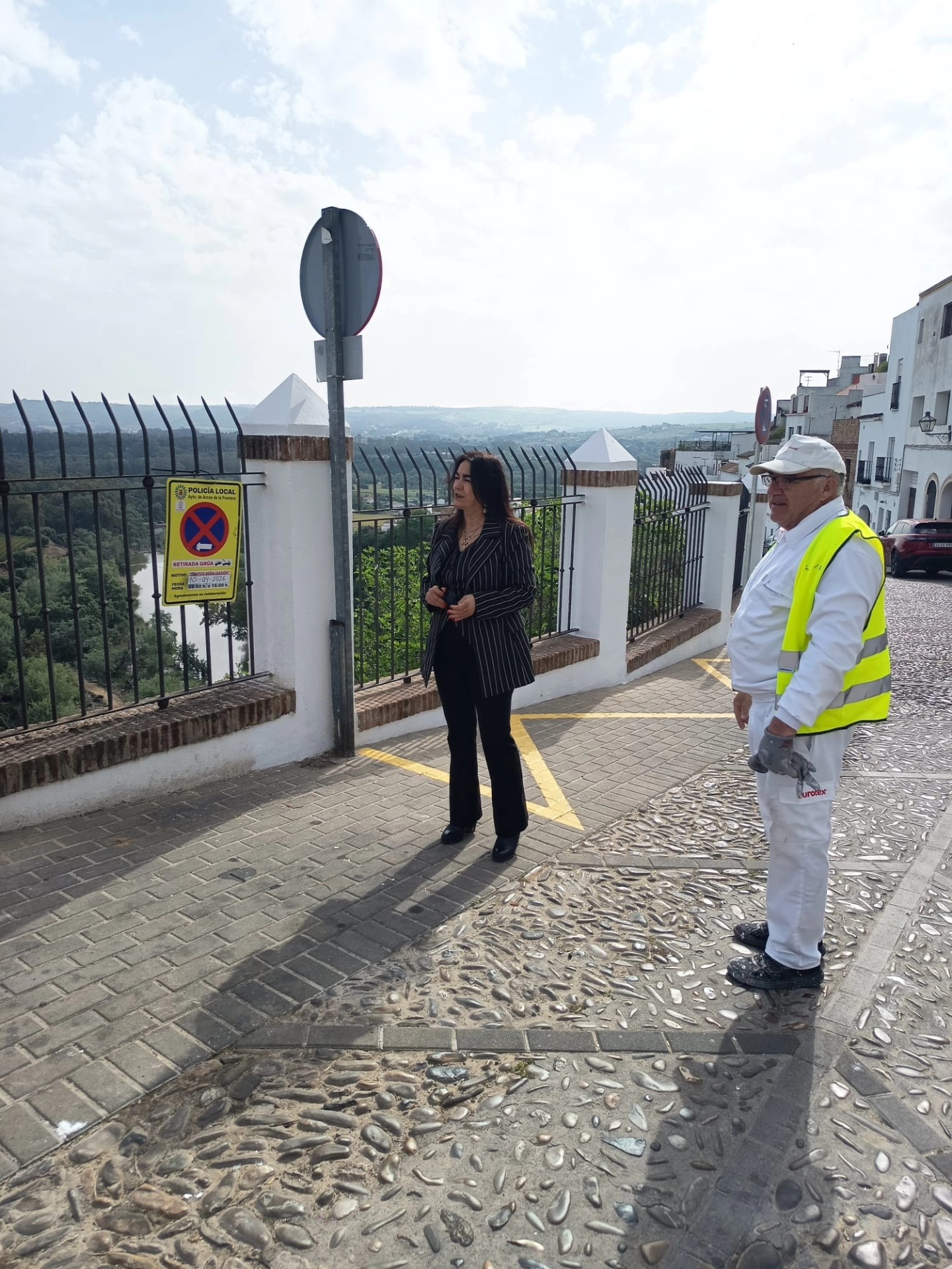El Alcalde de Arcos, Miguel Rodríguez, y la delegada territorial de Justicia, Administración Local y Función Pública de la Junta en Cádiz, Ana María Bertón, han visitado, junto a delegados del equipo de Gobierno, la obra de acceso a las instalaciones deportivas de El Santiscal, una actuación del PFEA 2025 que ha permitido transformar un